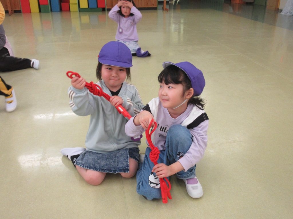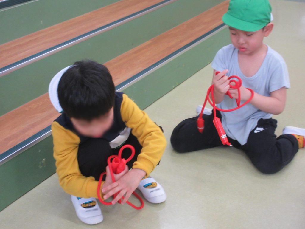 終わった後は、自分で縄跳びを結び