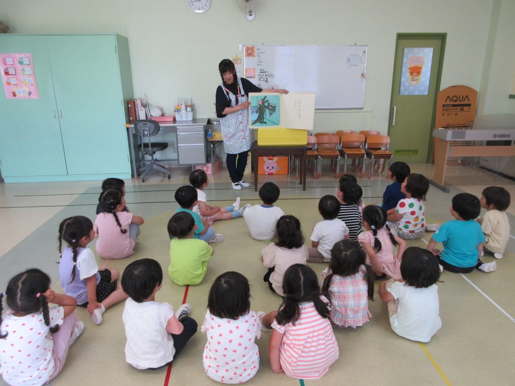 絵本読み聞かせの時間です。見た目が怖そ