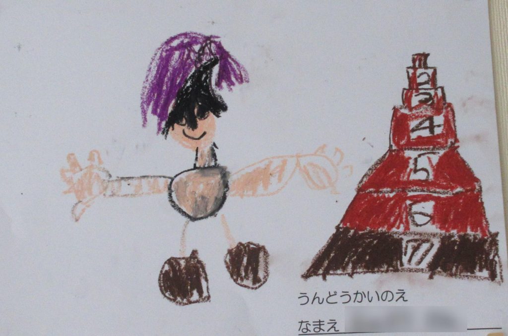 運動会で頑張ったことをクレヨンで描きま