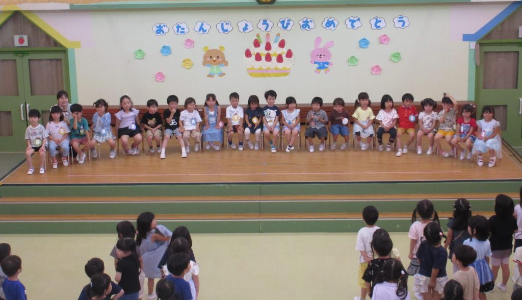 今日はホールで7月生まれの誕生会をしま