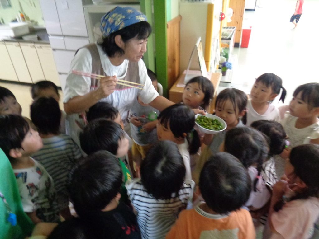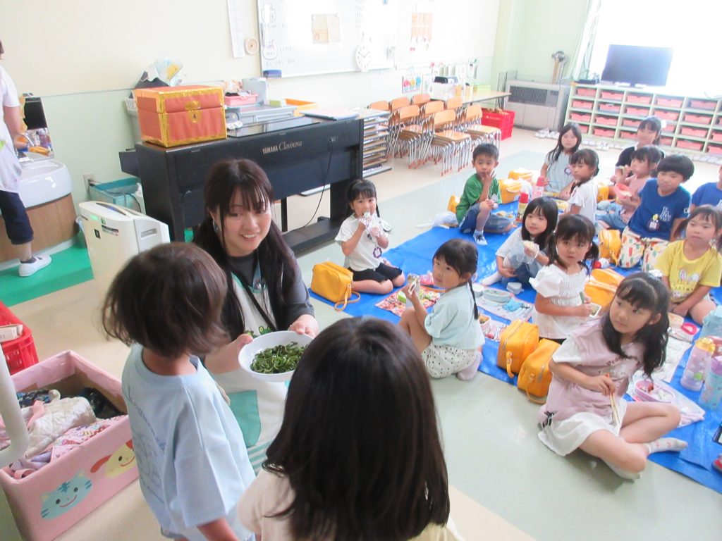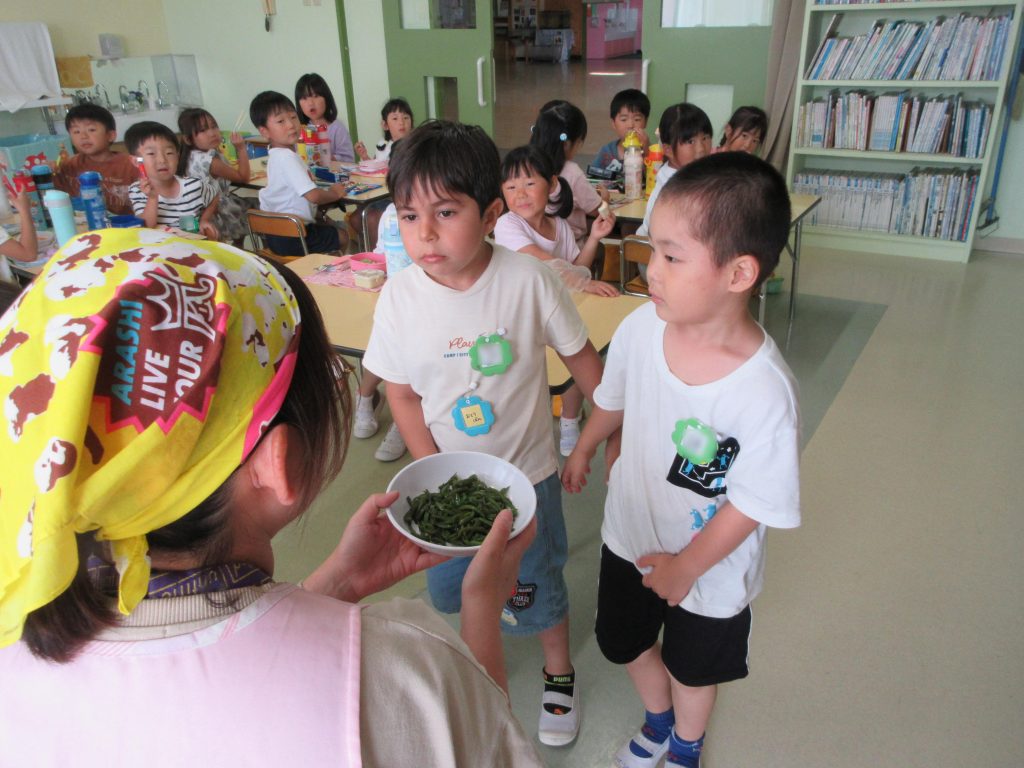 ひまわり組のピーマンをりす組におすそ分