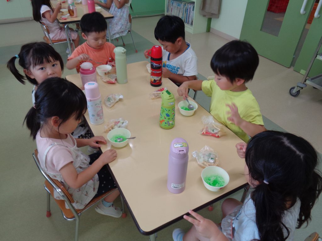 今日のおやつに、かき氷🍧を食べました。
