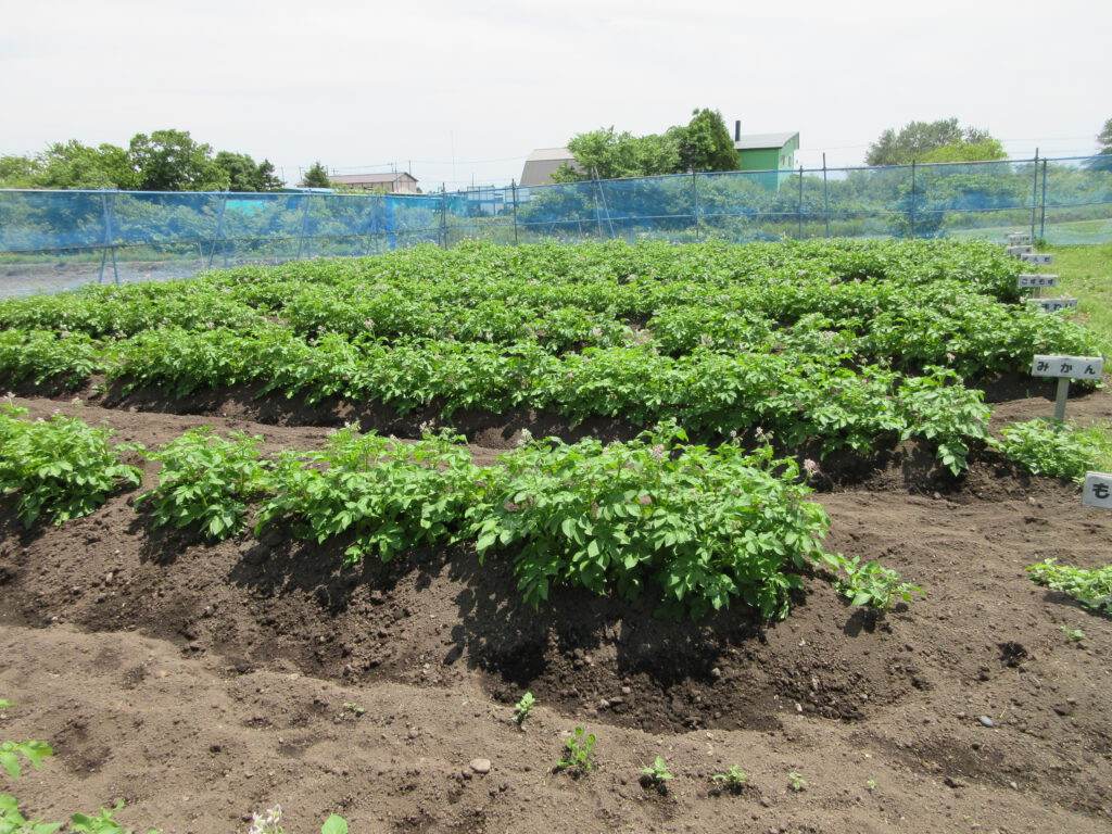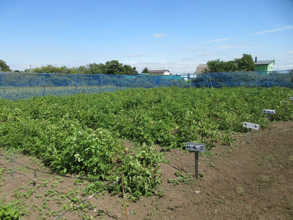 園の畑のじゃがいもの葉が少しずつ倒れか