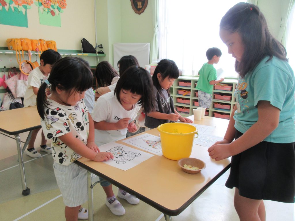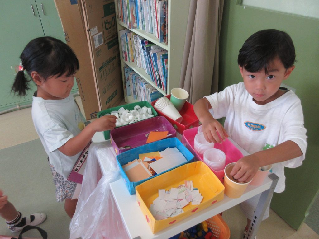 年長さんの部屋へ入り、何を作ろうかな?