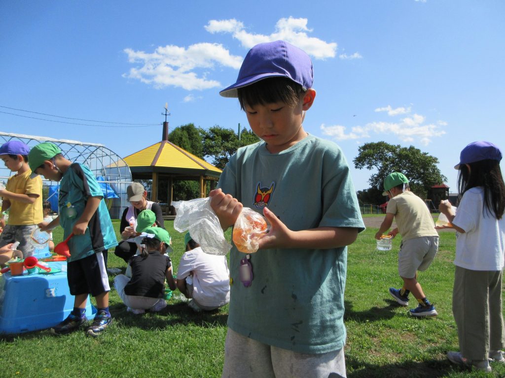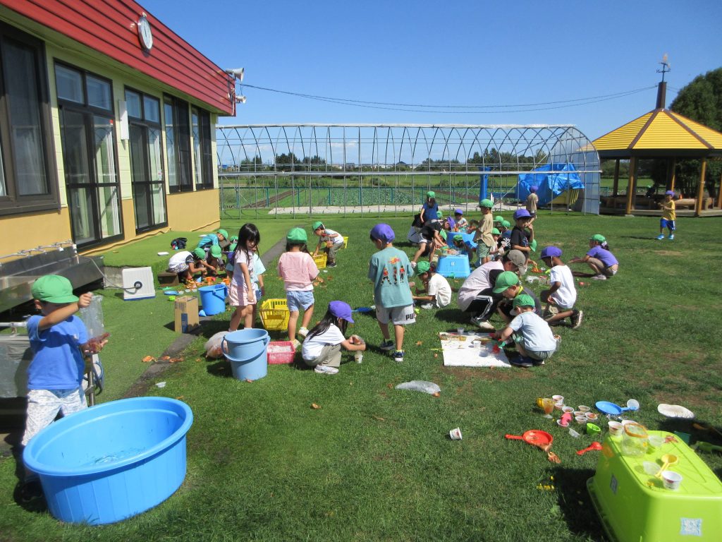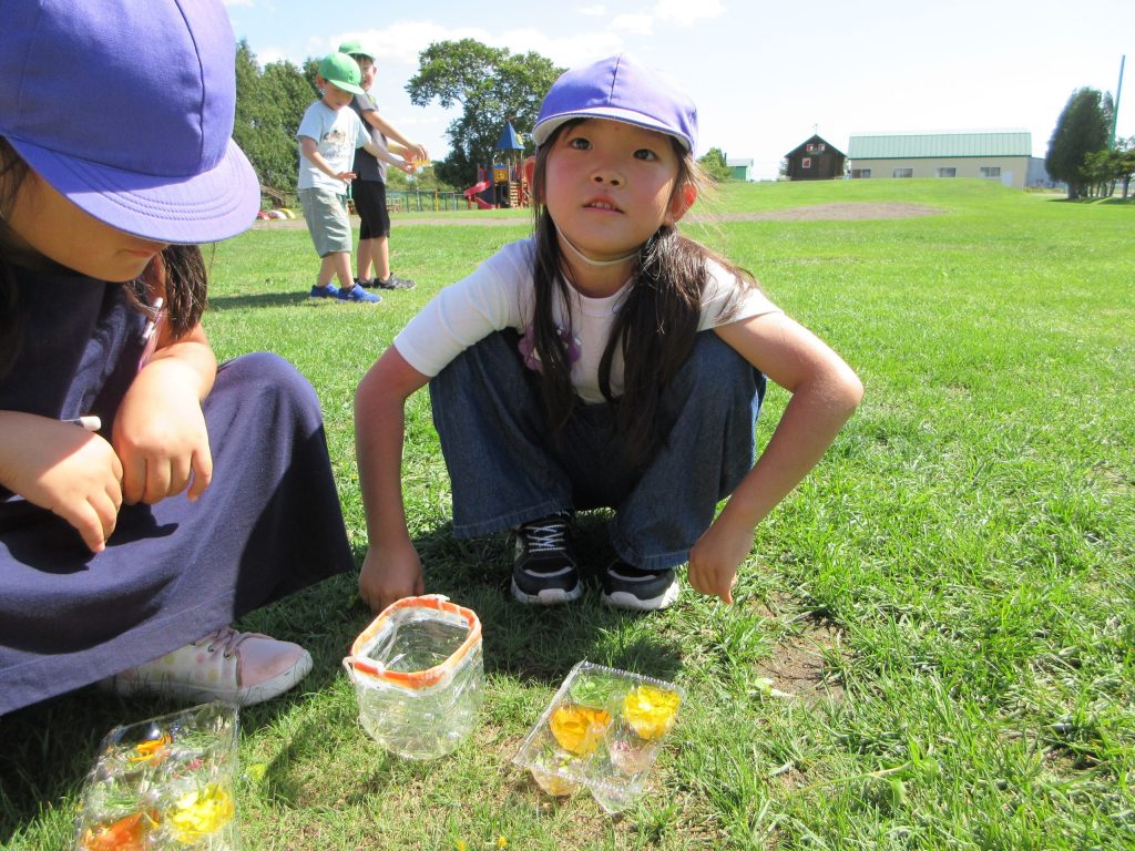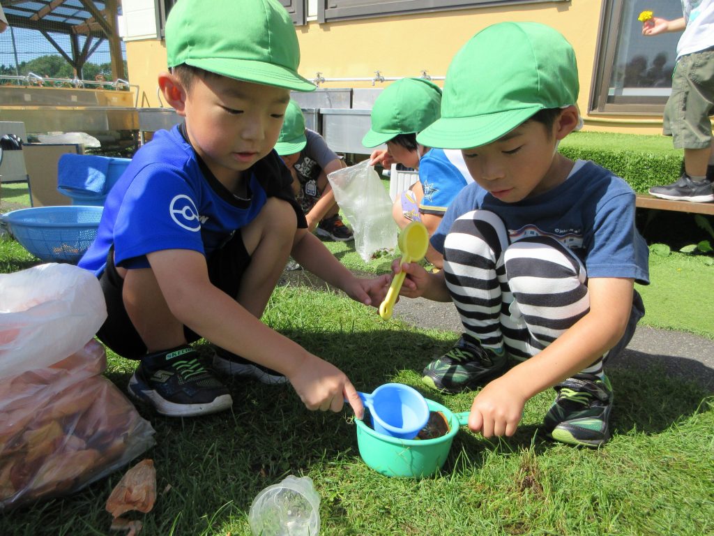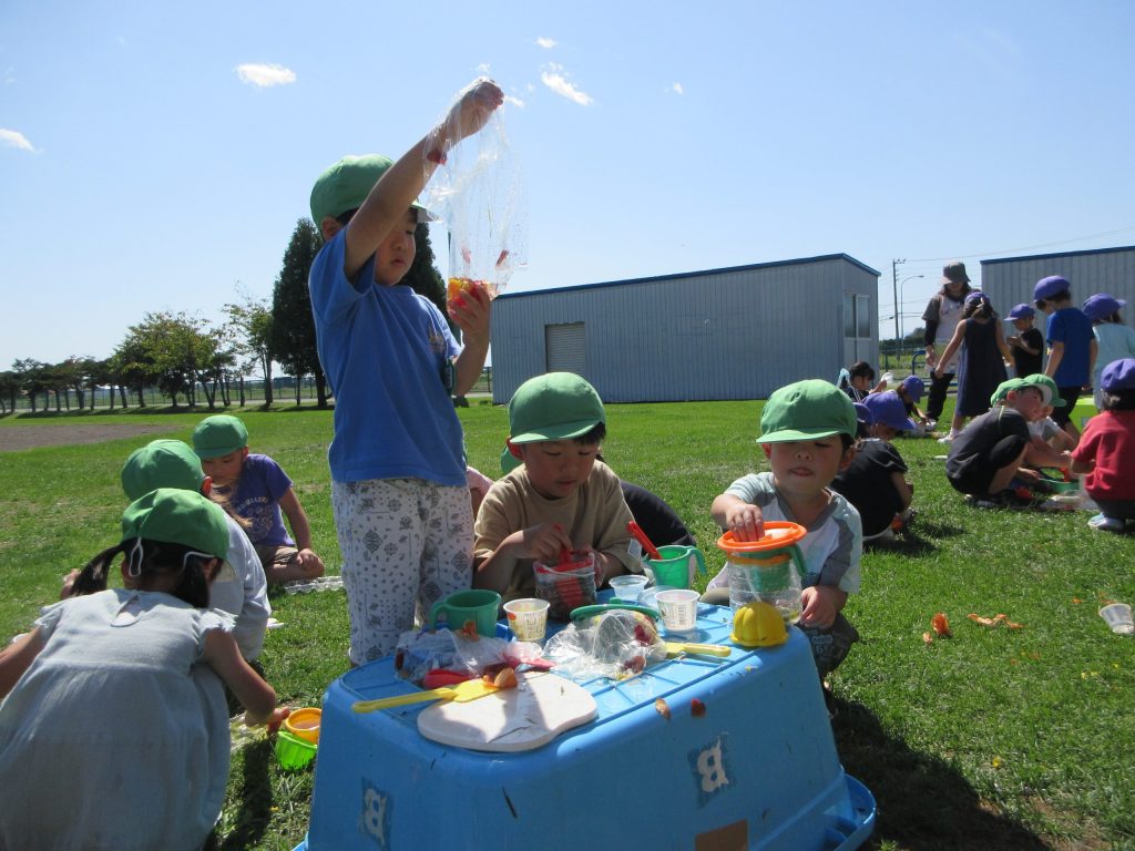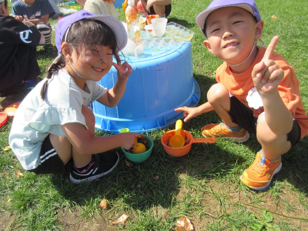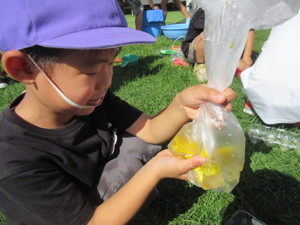 玉ねぎの皮も使って、色水作りに挑戦!!