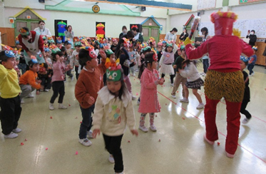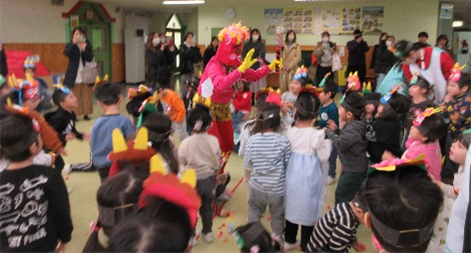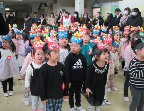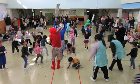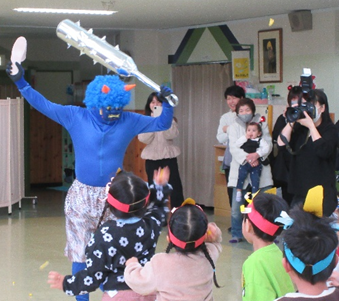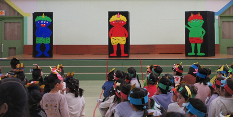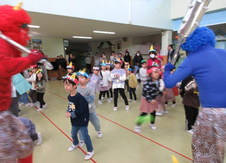 年中、年長の番では、パワーアップした鬼が金棒を持って登場!