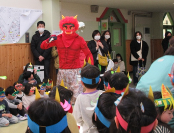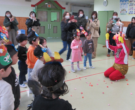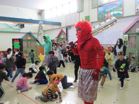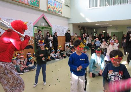 子ども達の「おには~そと!ふくは~うち!」の声で、鬼は退散しました👹