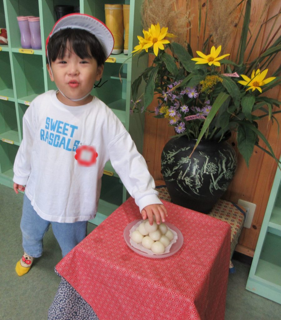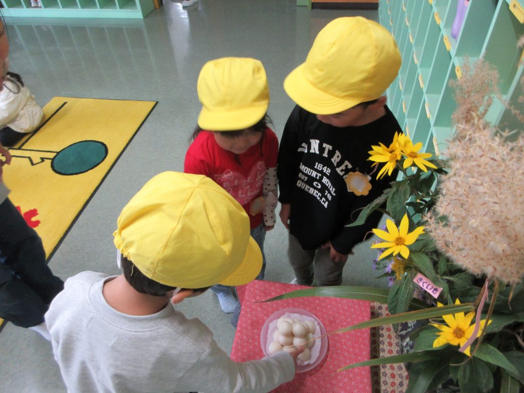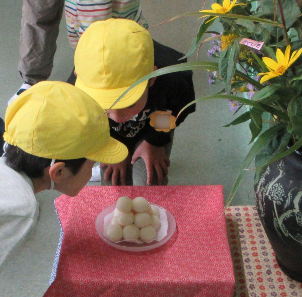 毎年、幼稚園の玄関フロアに十五夜の飾り
