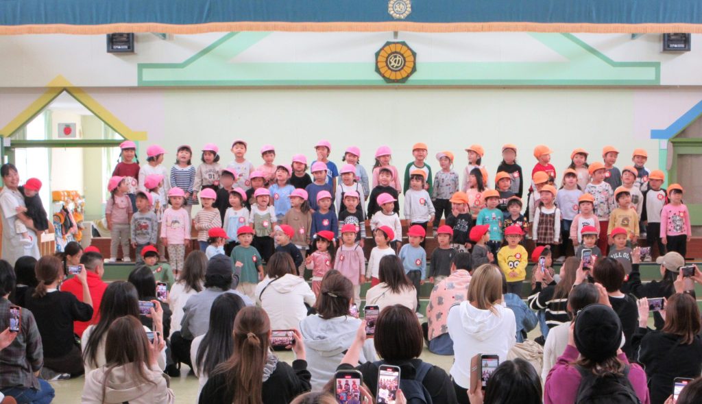 設定保育は、ホールで🎵「きのこ」を歌い