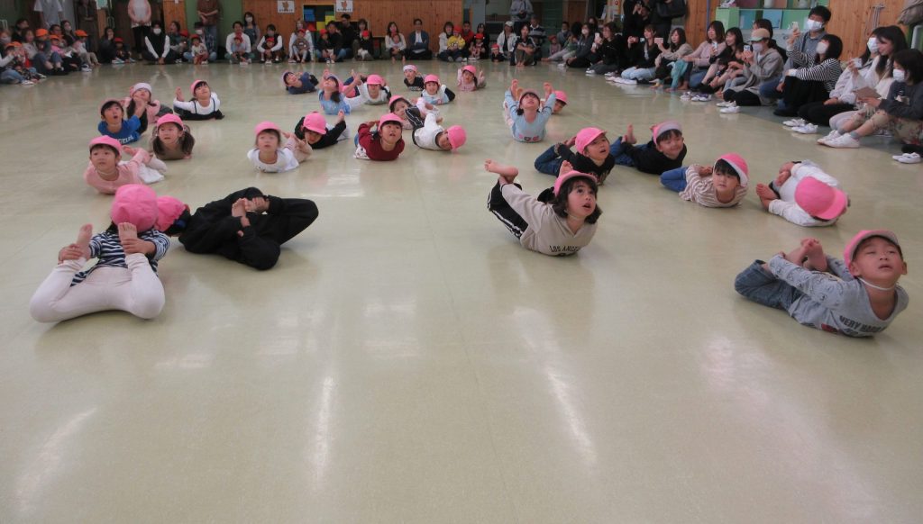 跳んだり、反ったり、走ったりと楽しく体