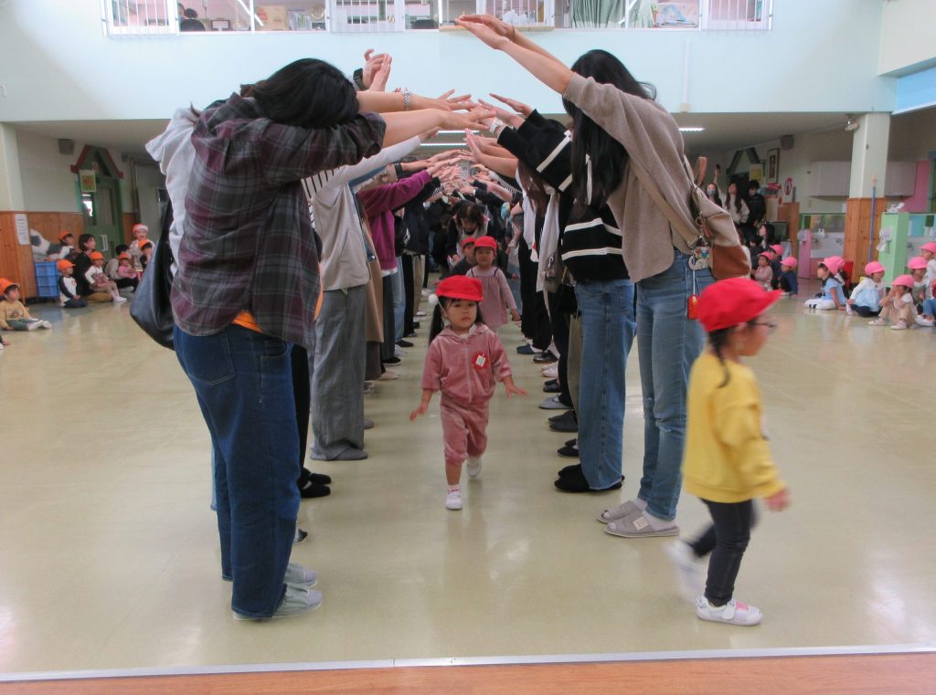 の皆さまにアーチを作っていただき、子ど