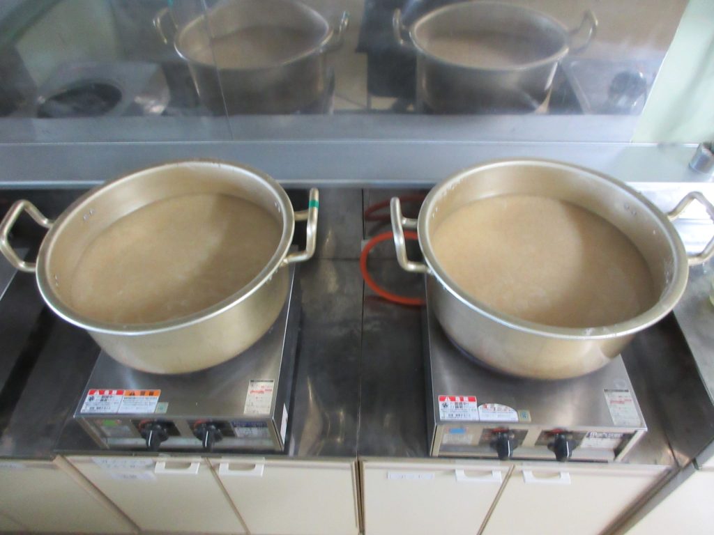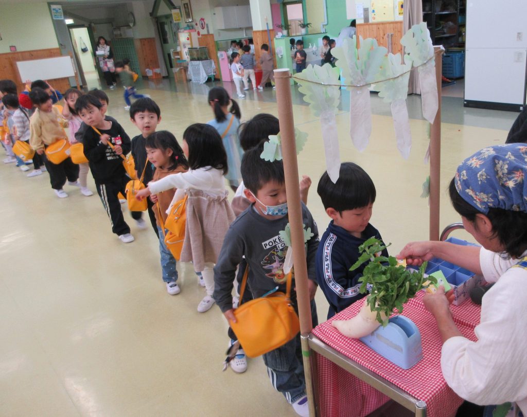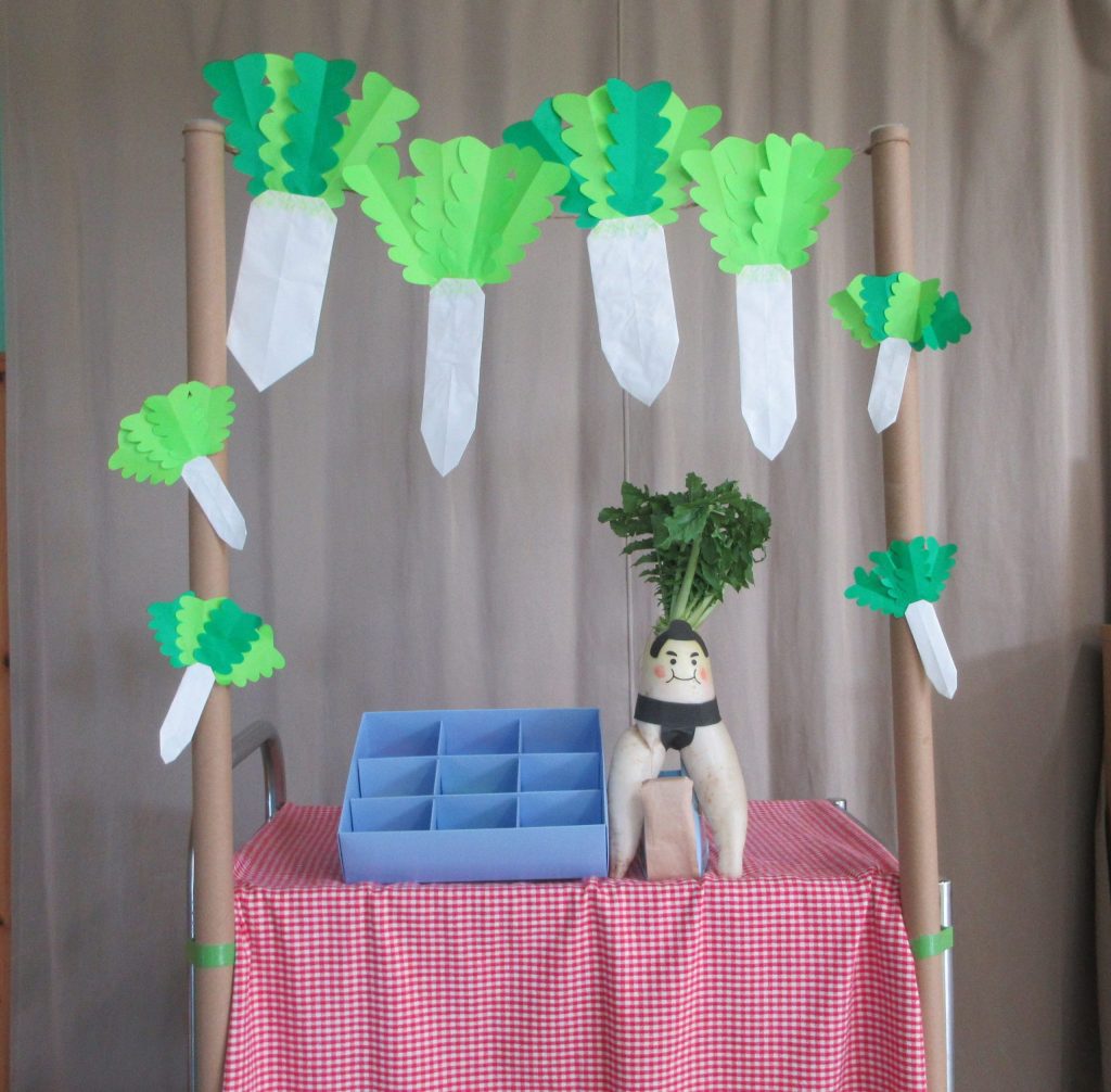 昨日、幼稚園の畑で収穫した大根を味噌汁