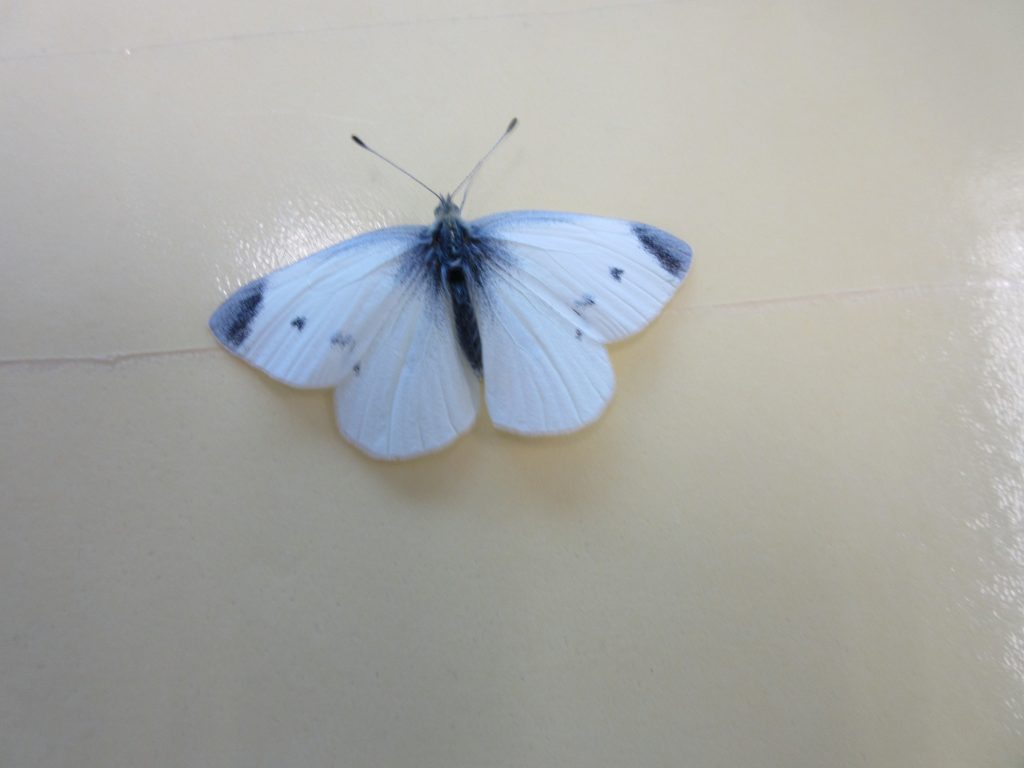 の幼虫を見つけ絵本「はらぺこあおむし」と